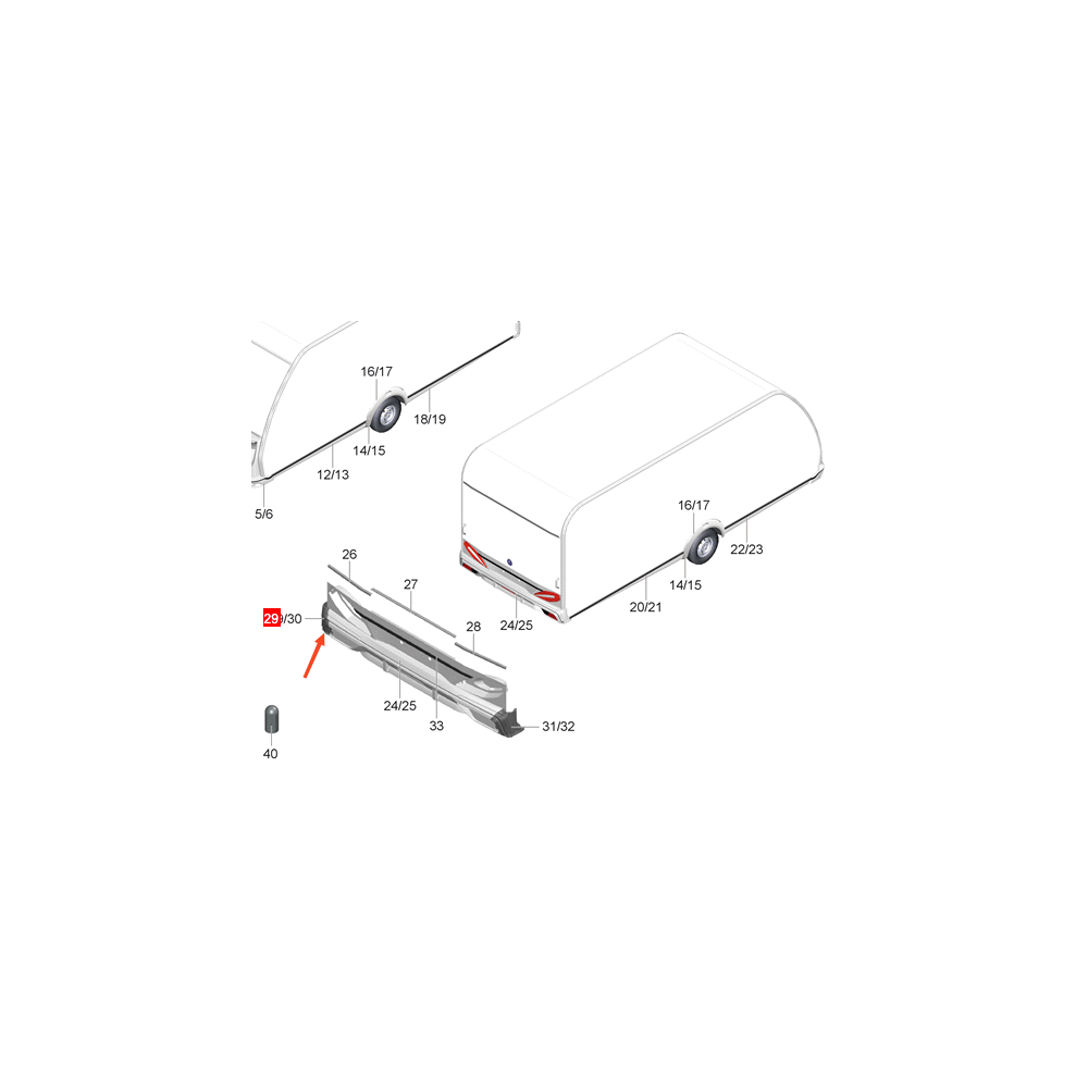 Narożnik montowany w przyczepach marki Knaus od 2022 roku. Część pasuje do modelu: